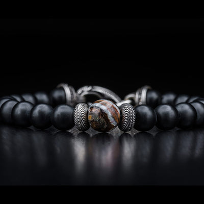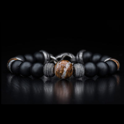 Men's Sterling Silver Tiger's Eye, Onyx and Dinosaur Bone Bracelet by William Henry Studio