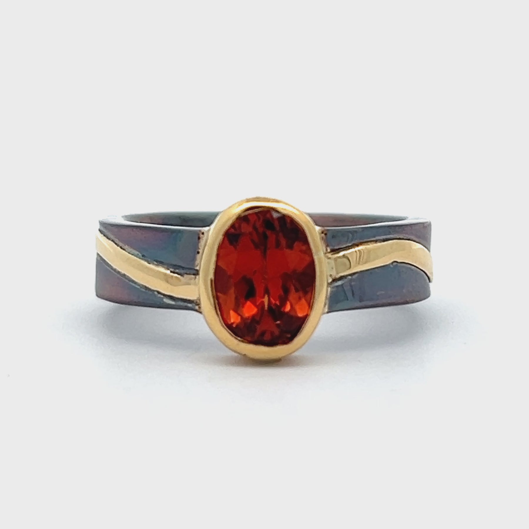Regular price $965.00 Save $-965.00The oxidized sterling silver and 18k yellow gold garnet ring is an original design and hand fabrication by Paul Richter, created as part of the Pathways Collection.