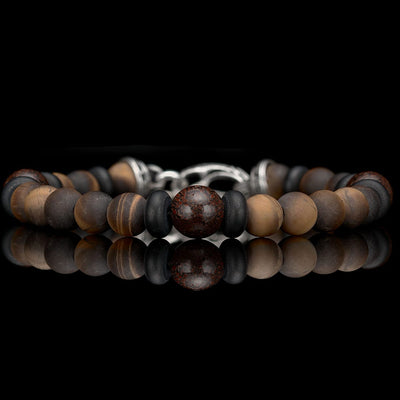 Men's Sterling Silver Tiger's Eye, Onyx and Dinosaur Bone Bracelet by William Henry Studio