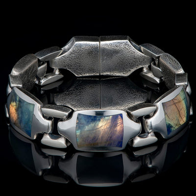 Men's Sterling Silver Labradorite and White Topaz Link Bracelet by William Henry Studio