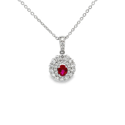 18k White Gold Oval Ruby and Round Diamond Halo Pendant (0.38ct.)