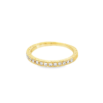 14k Yellow Gold Round Diamond Vintage Inspired Anniversary Band (0.16ctw.)