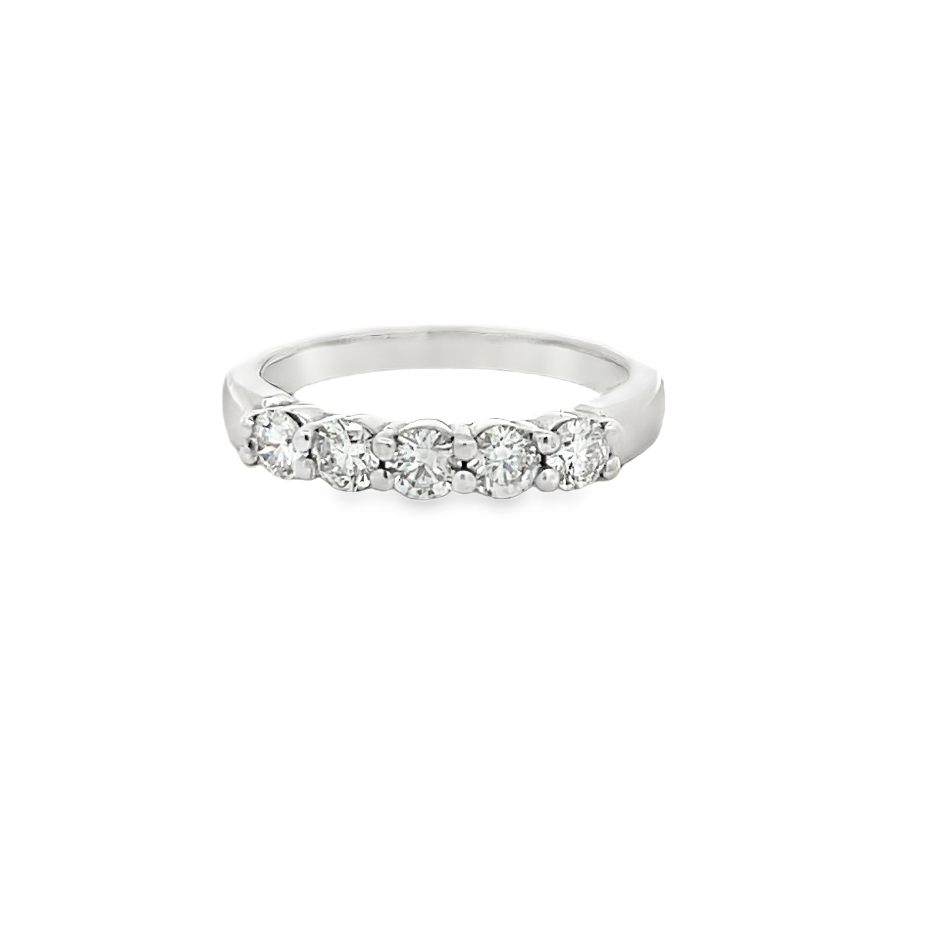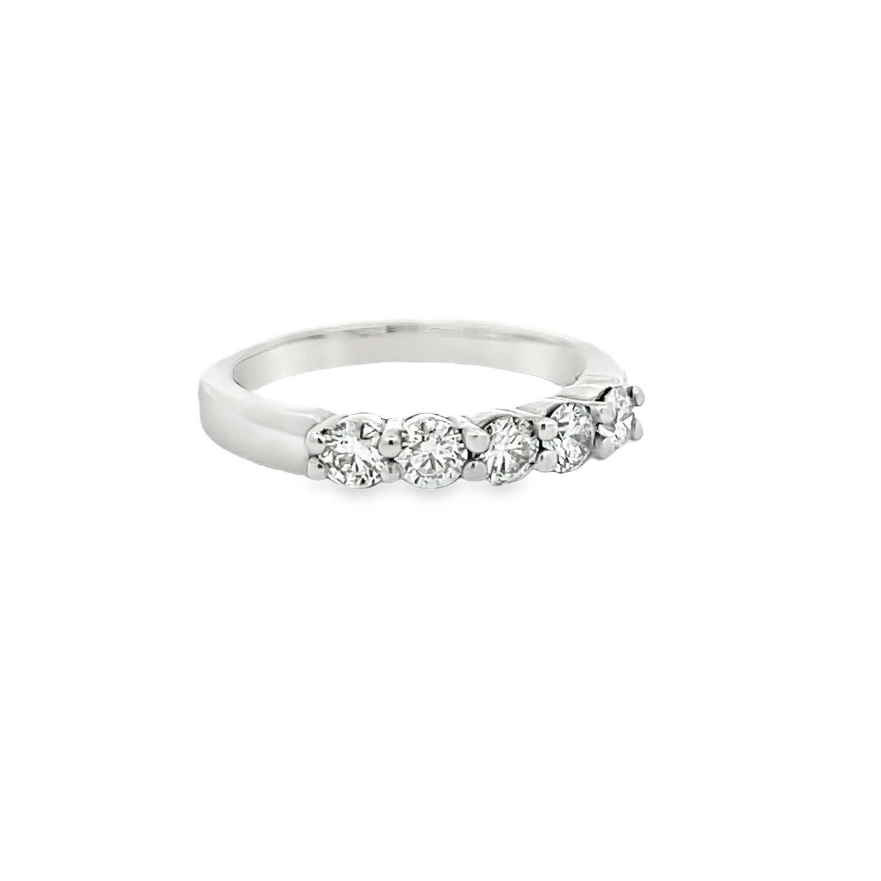 Regular price $3,475.00 Save $-3,475.00The 14k white gold diamond anniversary band is a shared prong style that features five round brilliant cut diamonds.